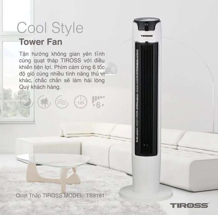 Một trong những đồ gia dụng được nhiều người săn lùng nhất những ngày hè nóng bức là chiếc quạt tháp Tiross TS9181. Sản phẩm có những ưu việt về thiết kế, mẫu mã, tính năng và công suất; từ đó đem tới cho người dùng trải nghiệm vô cùng tốt. Dưới đây là thông tin chi tiết về chiếc quạt này.